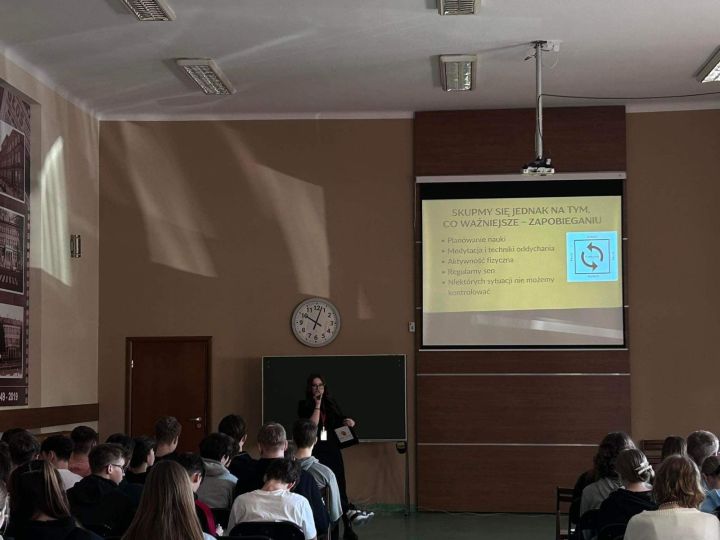 Dziewczyny przedstawiły uczniom sposoby radzenia sobie ze stresem, metody efektywnej nauki i zarządzania czasem oraz aplikacje przydatne w nauce. Mieliśmy zaszczyt gościć absolwentkę naszej szkoły - Karoline Gaborską, która opowiedziała o swoich doświadczeniach.