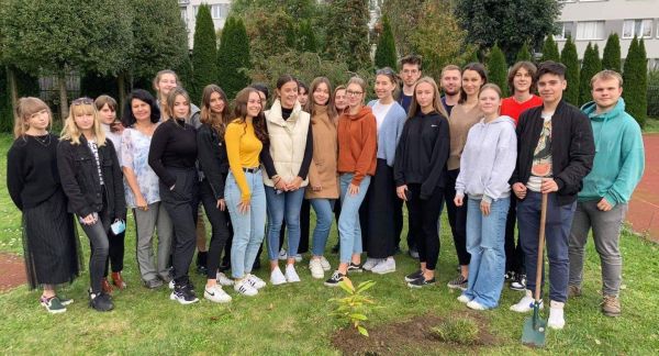 Anną Krzyżanowską przywieźli sadzonkę kasztana jadalnego, którą posadzili przy szkolnym boisku.